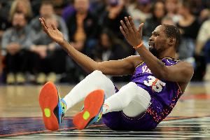 格林:“但对我来说这没那么有趣,因为他差不多了。KD都打了19年了,他是个七尺长人(注:约2米13)。一个七尺长人能打这么久,我觉得他差不多了,兄弟。”