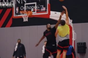 新赛季看你了?火箭训练:谢泼德单打杜兰特 在其长臂干扰下抛进