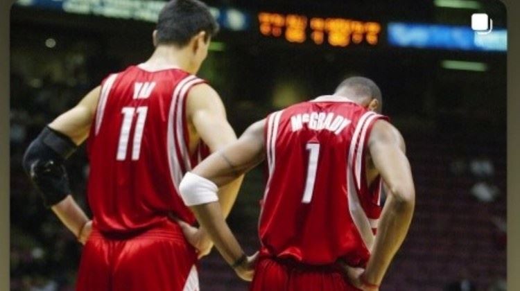体育资讯7月10日讯 今日开拓者队球员亨德森在社媒晒出一则怀念04年NBA群雄争霸的帖子,该帖子内有一堆当年的NBA明星照,值得一提的是,转发的时候他只晒出了姚明和麦迪的合照。