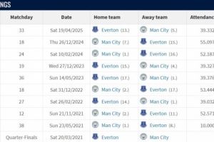 体育资讯10月18日讯 英超第8轮,曼城主场对阵埃弗顿。双方近10次交手,曼城8胜2平保持不败,进23球失3球。