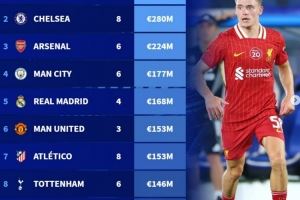 体育资讯8月4日讯 德转盘点了截至目前各支球队夏窗引援花费榜单,其中利物浦签下5人花费2.94亿欧居首,前四均为英超球队,具体如下(只包括支付转会费的球员):