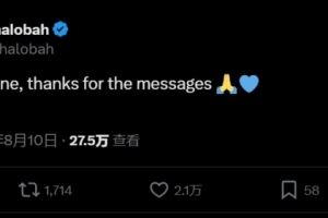 查洛巴写道:“一切安好,感谢大家的留言 ”